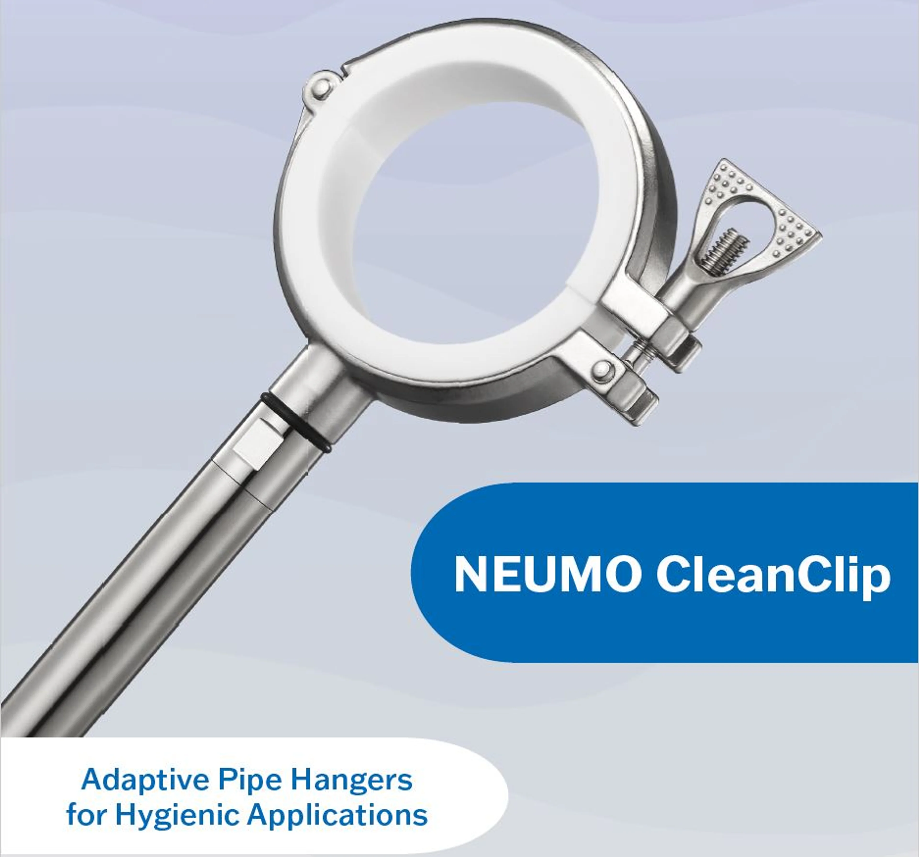 NEUMO CleanClip pipe hangers represent the highest standards in hygiene, flexibility, and stability. With a wide range of configurations – including fixed, adjustable, and 360° rotating designs – CleanClip offers tailored solutions for demanding hygienic process environments.